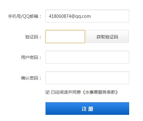 填入手机号码或者邮箱账户,点击图中的“获取验证码”,系统将会发送一段6位随机数到您手机或邮箱内,收到信息后,请将6位随机数填入验证码输入框,并填写两遍同样的密码后点击注册即可进入系统开始使用。